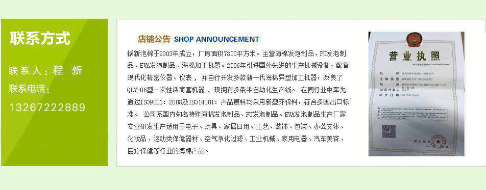深圳市振新泡棉科技有限公司于2003年成立,廠房面積7800平方米。主營海棉發(fā)泡制品、PU發(fā)泡制品、EVA發(fā)泡制品、海棉加工機器。2006年引進國外先進的生產(chǎn)機械設(shè)備,配備現(xiàn)代化精密儀器、儀表 , 并自行開發(fā)多款新一代海棉異型加工機器,改良了QLY-06型一次性話筒套機器 , 現(xiàn)擁有多條半自動化生產(chǎn)線。 我們擁有一批經(jīng)驗豐富的工程技術(shù)人員和高級管理人員,在同行業(yè)中率先通過ISO9001:2008及ISO14001:產(chǎn)品原料均采用新型環(huán)保料,符合多國出口標準。 公司系國內(nèi)知名特殊海棉發(fā)泡制品、PU發(fā)泡制品、EVA發(fā)泡制品生產(chǎn)廠家,專業(yè)研發(fā)生產(chǎn)適用于電子、玩具、家居日用、工藝、裝飾、包裝、辦公文體、化妝品、運動類保健器材、空氣凈化過濾、工業(yè)機械、家用電器、汽車美容、醫(yī)療保健等行業(yè)的海棉產(chǎn)品。 產(chǎn)品的類型如:高密度聚酯海棉、普通海棉、異型定型海棉、防火/阻燃海棉、高回彈/慢回彈海棉、過濾網(wǎng)狀海棉、EVA玩具禮品、PU發(fā)泡定型玩具禮品等等。產(chǎn)品名稱如:耳機/話筒KTV海棉套、海棉圓球、洗刷海棉、吸水海棉、木漿海棉、化妝海棉、相機海棉、墨盒海棉、壓縮海棉、橡膠海棉、粗細孔過濾海棉、波峰隔音海棉、醫(yī)用海棉、海棉枕頭、包裝防震海棉、1mm厚海棉、電子/醫(yī)用海棉棉簽、EVA球、EVA智力拼圖、EVA鑰匙扣、PU座墊、PU公仔、PU球類等等。 我們還獲得多家國際知名廠商的授權(quán)資格,代理多品種家庭用品。 產(chǎn)品多年來一直銷往全球,深受廣大用戶和客商的青睞。